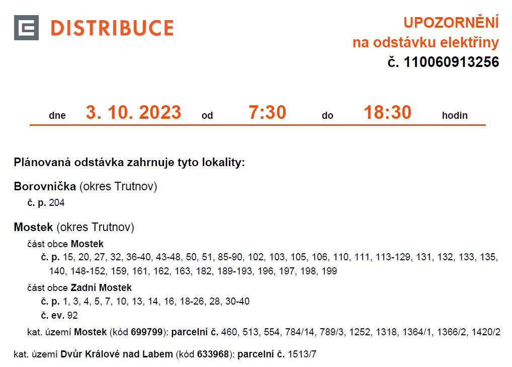Více o odstávkách elektřiny v naší obci naleznete zde